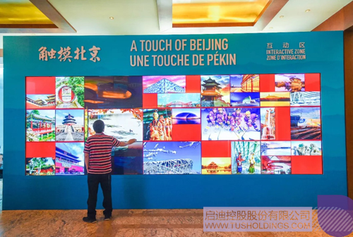 一大片觸摸屏引起了記者的注意。工作人員介紹,這是“觸摸北京”互動(dòng)區(qū),采用雷達(dá)感應(yīng)多點(diǎn)觸控交互技術(shù),可滿足5人同時(shí)觸摸滑屏翻閱,觀賞400幅展示北京城市形象的圖片。