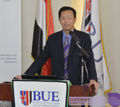 首先,BUE大學(xué)董事會主席Mohamed Farid Khamis先生對啟迪之星(開羅)的最終落地表示祝賀,并在致辭中用兩個“最”來形容大學(xué)科技園的意義以及與啟迪的合作:建設(shè)和運營大學(xué)科技園及孵化器是當(dāng)下BUE大學(xué)對埃及社會進步和經(jīng)濟發(fā)展能做出的最大貢獻;中國的啟迪控股是BUE建設(shè)運營大學(xué)科技園和孵化器最理想的合作伙伴。Mr. Farid Khamis Khamis表示,在啟迪的支持和幫助下,BUE大學(xué)有信心將大學(xué)科技園建設(shè)運營為埃及乃至北非最成功、最有影響力的科技園。