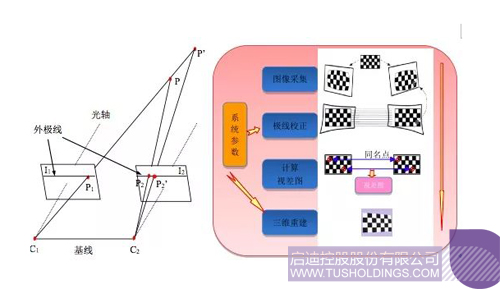 現(xiàn)實世界中的物體都是三維的,人眼所獲得的景物圖像卻是二維的,但是人類的視覺系統(tǒng)能夠很容易地從二維圖像中感知三維世界,人依據(jù)空間點在視網(wǎng)膜上成像位置的差異來感知物體的遠近。三維人臉照相機就是模擬這一原理,通過采集多幅圖像來完成人臉的三維建模,三維全臉模型包括了左右耳朵之間的臉部三維模型。
