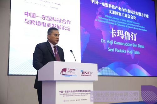 中國—東盟科技產(chǎn)業(yè)合作委員會(huì)東盟方主席、文萊國家工商會(huì)會(huì)長卡瑪魯汀致辭