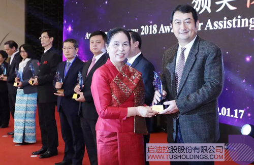 現(xiàn)場(chǎng)頒發(fā)的“2018年助力中國(guó)—東盟企業(yè)合作獎(jiǎng)”由中國(guó)—東盟商務(wù)理事會(huì)、東盟北京委員會(huì)及東盟十國(guó)駐華大使館共同在中國(guó)和東盟優(yōu)秀代表中評(píng)選產(chǎn)生,老撾駐華大使萬(wàn)迪·布達(dá)薩馮為包括廣西啟迪、柬埔寨王國(guó)駐華大使館公使銜商務(wù)參贊鐵弓、緬甸駐華大使館商務(wù)參贊杜丹達(dá)凱、越南駐華大使館商務(wù)參贊陶越英、中國(guó)電力企業(yè)聯(lián)合會(huì)、深圳廣田集團(tuán)股份有限公司等十個(gè)獲獎(jiǎng)個(gè)人和單位代表頒獎(jiǎng)。
