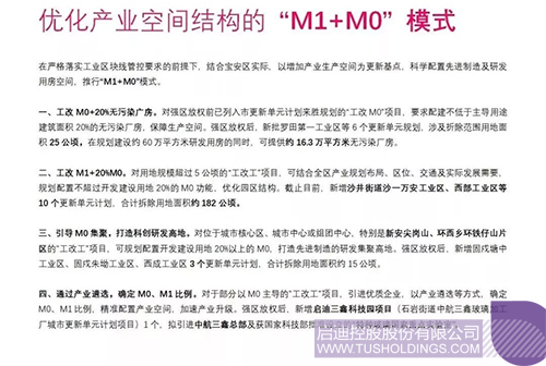 寶安城市更新不斷探索符合寶安區(qū)情的方法路徑,打造“寶安模式”?!皢⒌先慰萍紙@項(xiàng)目”(申報(bào)名稱:石巖街道中航三鑫玻璃加工廠城市更新單元)被列入“優(yōu)化產(chǎn)業(yè)空間結(jié)構(gòu)的‘M1+M0’模式”,并成為模式中通過(guò)產(chǎn)業(yè)遴選,確定以M0為主導(dǎo)的“工改工”項(xiàng)目的首要范例。