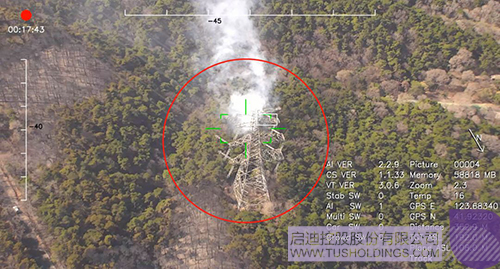 沈陽(yáng)棋盤(pán)山火場(chǎng)分布面積廣,兩個(gè)大火點(diǎn)相距10km以上,我們的3V復(fù)合翼無(wú)人機(jī)從指揮處起飛,一次飛行即將所有火點(diǎn)巡查完畢。并在重要火點(diǎn)處進(jìn)行盤(pán)旋飛行,對(duì)火場(chǎng)進(jìn)行360°觀察,標(biāo)注位置和火勢(shì)情況信息,搭載的三軸30倍光電吊艙可隨時(shí)拉近查看地面細(xì)節(jié)。做到從整體到局部的完整觀察。同時(shí)還可搭載微光和紅外載荷,在夜間及通過(guò)溫度觀察隱藏火點(diǎn)。