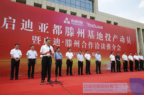 邵士官在投產(chǎn)動員會上致辭。他說,啟迪控股資源豐富、實(shí)力雄厚,是全球科技服務(wù)領(lǐng)域的企業(yè)龍頭和行業(yè)典范。今天投產(chǎn)的啟迪亞都加濕器項(xiàng)目,科技含量高、市場前景好、帶動能力強(qiáng),對于加快我市智能制造產(chǎn)業(yè)發(fā)展、助力新舊動能轉(zhuǎn)換具有重要意義。項(xiàng)目落戶滕州,必將開啟雙方友好合作、攜手發(fā)展新篇章。我們將秉持“親商、安商、富商”的理念,把推進(jìn)項(xiàng)目建設(shè)作為市委、市政府的重點(diǎn)工程來抓,扎實(shí)做好服務(wù)支持推動工作。希望啟迪以項(xiàng)目竣工投產(chǎn)為新起點(diǎn),進(jìn)一步加大投入和管理創(chuàng)新力度,推動更多項(xiàng)目、資金、人才、技術(shù)落戶滕州,努力實(shí)現(xiàn)企地雙贏,爭取早日建成國內(nèi)一流的智能制造基地。