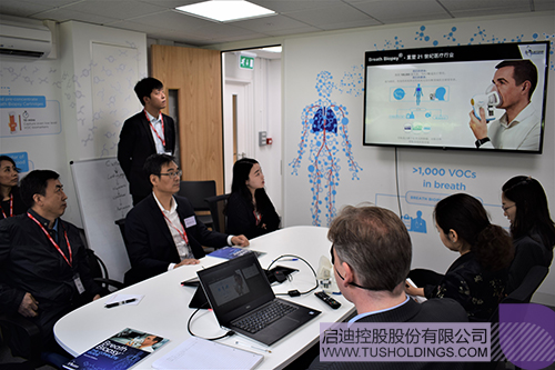 金勤獻(xiàn)院長(zhǎng)一行與Owlstone、Biosceptre兩家劍橋的生命科技研發(fā)企業(yè)的負(fù)責(zé)人進(jìn)行交流,Owlstone是一家從事呼吸活檢技術(shù)全球領(lǐng)先的創(chuàng)新研發(fā)企業(yè),獲得多家知名風(fēng)險(xiǎn)投資青睞,目前與上海仁濟(jì)醫(yī)院合作開展肺癌早期檢測(cè)的臨床試驗(yàn);Biosceptre專注于開發(fā)針對(duì)nfP2X 7的下一代癌癥治療方案,目前已完成臨床I期試驗(yàn),該公司在獲得啟迪投資后正積極探索落地中國(guó)的方案。隨后,金勤獻(xiàn)院長(zhǎng)介紹了清華大學(xué)在醫(yī)學(xué)領(lǐng)域強(qiáng)大的學(xué)術(shù)資源與研發(fā)能力,同時(shí)介紹了全球健康藥物研發(fā)中心與荷塘資本,他表示清華大學(xué)已經(jīng)建立起具備全方位創(chuàng)新服務(wù)能力的成果轉(zhuǎn)化體系,期待與世界前沿的生命科技研發(fā)企業(yè)在聯(lián)合研發(fā)、市場(chǎng)拓展、股權(quán)投資等開展多層次合作。
