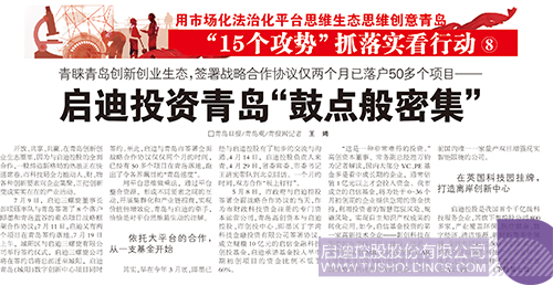 青島日報頭版報道:啟迪投資青島“鼓點般密集”打印