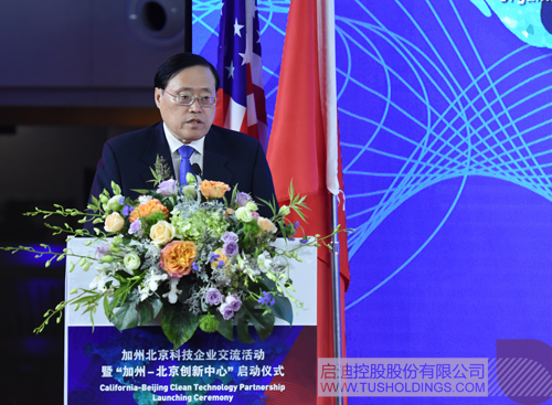 6月7日,加州-北京科技企業(yè)交流活動(dòng)暨加州-北京創(chuàng)新中心啟動(dòng)儀式在北京市中關(guān)村國(guó)際創(chuàng)新中心舉行。北京市政協(xié)副主席閆仲秋,科技部國(guó)際合作司副司長(zhǎng)祝學(xué)華,北京市海淀區(qū)委書(shū)記崔述強(qiáng),中關(guān)村管委會(huì)國(guó)際業(yè)務(wù)總監(jiān)曾曉東,國(guó)務(wù)院參事、中國(guó)可再生能源學(xué)會(huì)理事長(zhǎng)石定寰,清華大學(xué)原常務(wù)副校長(zhǎng)、國(guó)家氣候變化專家委員會(huì)副主任何建坤等蒞臨了此次活動(dòng)?;顒?dòng)由海淀區(qū)委副書(shū)記、海淀區(qū)區(qū)長(zhǎng)于軍主持。啟迪控股總裁袁桅出席并致辭。