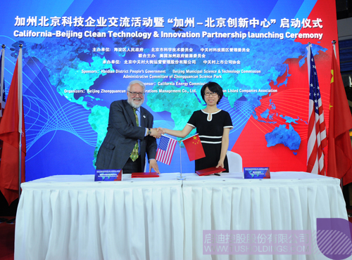 活動(dòng)中,海淀區(qū)副區(qū)長(zhǎng)李長(zhǎng)萍女士與美國(guó)加州政府能源委員會(huì)主席羅伯特·維森米勒先生共同簽署了“清潔能源與技術(shù)創(chuàng)新合作伙伴戰(zhàn)略協(xié)議”;海淀區(qū)委書(shū)記崔述強(qiáng)先生與加州能源委員會(huì)主席羅伯特?維森米勒先生共同為“加州-北京創(chuàng)新中心”揭牌。同時(shí),美國(guó)加州大學(xué)、清華控股與啟迪清潔能源集團(tuán)共同發(fā)起了加州-中國(guó)清潔技術(shù)基金。未來(lái),加州-北京創(chuàng)新中心將作為美國(guó)加州政府在京設(shè)立的唯一創(chuàng)新服務(wù)平臺(tái),輔以產(chǎn)業(yè)創(chuàng)新基金,成為集空間載體與創(chuàng)新服務(wù)為一體綜合機(jī)構(gòu),最大限度的促進(jìn)在能源、環(huán)保等行業(yè)上的技術(shù)交流、投融資服務(wù)、產(chǎn)業(yè)合作、資源共享,建立長(zhǎng)久密切的合作關(guān)系。