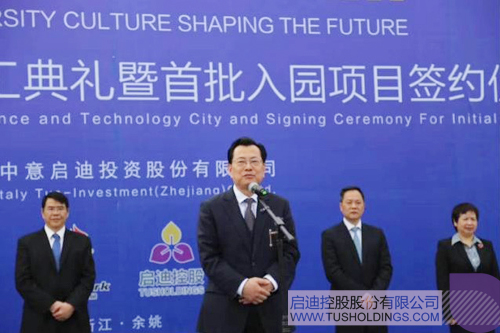 王濟(jì)武董事長在致辭中對寧波及余姚政府在項(xiàng)目合作中給予的信任和支持表示感謝。他表示,啟迪控股作為科技服務(wù)業(yè)的中國引領(lǐng)者和全球典范,已全球范圍內(nèi)建立起規(guī)模最大且獨(dú)一無二的創(chuàng)新基地網(wǎng)絡(luò),并在眾多“一帶一路”沿線國家及相關(guān)地區(qū)布局,中意啟迪科技城是啟迪控股布局浙江、深耕寧波的首個創(chuàng)新基地。啟迪控股作為“G60科創(chuàng)走廊”建設(shè)的領(lǐng)頭羊,將積極引入全球創(chuàng)新要素,探索構(gòu)建“滬杭甬紹創(chuàng)新平臺”,實(shí)現(xiàn)長三角創(chuàng)新共享、協(xié)同聯(lián)動。