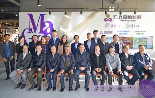 陳禹(前排左一)向尹蔚民(前排右三)一行介紹啟迪在滇發(fā)展情況
