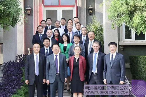 啟迪明石董事許維強(前排左),ORE CATAPULT創(chuàng)新與研究部總監(jiān)Stephen Wyatt博士(前排中),啟迪清潔能源集團高級副總裁、啟迪清風總經(jīng)理杜瑛卓(前排右一)代表三方共同簽署成立“啟迪中英海洋科技研究院”的協(xié)議