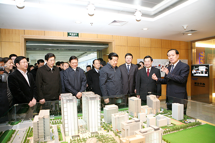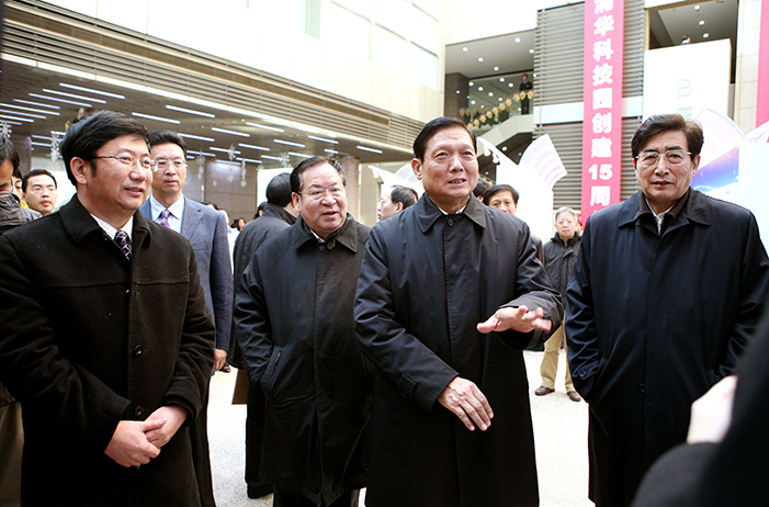 2010年,時任中共中央政治局常委、十一屆全國政協(xié)主席賈慶林在時任中央政治局委員、北京市委書記劉淇、北京市市長郭金龍、清華大學(xué)黨委書記胡和平、常務(wù)副校長陳吉寧等陪同下前來清華啟迪參觀考察。