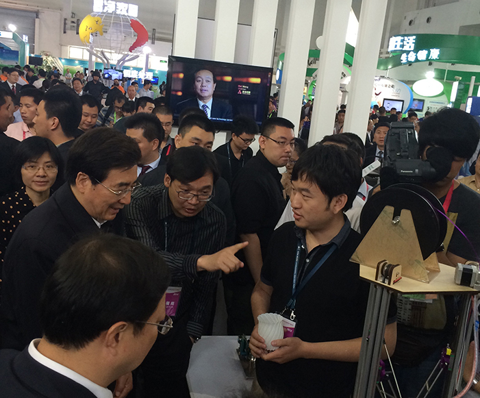 2014年,中共中央政治局委員、北京市市委書記郭金龍到第十七屆科博會清華科技園啟迪之星展區(qū)參觀。