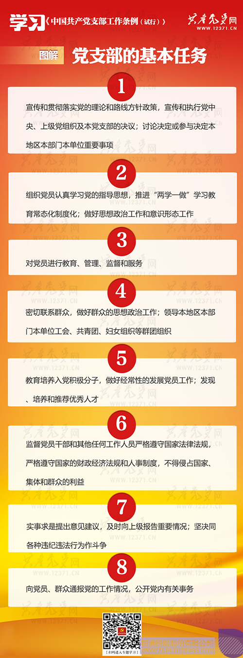 《中國(guó)共產(chǎn)黨支部工作條例(試行)》是為堅(jiān)持和加強(qiáng)黨的全面領(lǐng)導(dǎo),弘揚(yáng)“支部建在連上”光榮傳統(tǒng),落實(shí)黨要管黨、全面從嚴(yán)治黨要求,全面提升黨支部組織力,強(qiáng)化黨支部政治功能,充分發(fā)揮黨支部戰(zhàn)斗堡壘作用,鞏固黨長(zhǎng)期執(zhí)政的組織基礎(chǔ),根據(jù)《中國(guó)共產(chǎn)黨章程》和有關(guān)黨內(nèi)法規(guī)制定。由中共中央于2018年11月25日印發(fā),自2018年10月28日起施行。