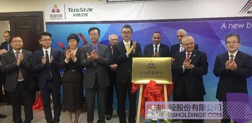 啟迪控股黨委書記李志強(qiáng)、常務(wù)副總裁陳鴻波、副總裁安紅平與埃及BUE大學(xué)副校長(zhǎng)葉哈頁(yè)教授共同為啟迪北非中心揭牌
