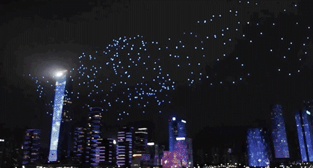當(dāng)600架無(wú)人機(jī)編隊(duì)飛向空中