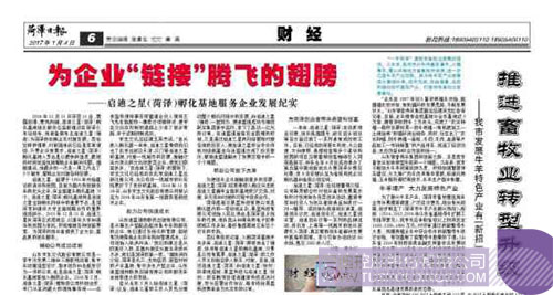 菏澤日?qǐng)?bào)財(cái)經(jīng)版刊登啟迪之星(菏澤)報(bào)道