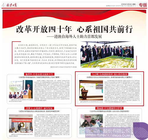10月8日,北京日報(bào)發(fā)表改革開放40周年專題文章《改革開放四十年 心系祖國共前行 ——港澳臺(tái)海外人士助力首都發(fā)展 》,文中報(bào)道京澳經(jīng)濟(jì)文化交流促進(jìn)會(huì)副會(huì)長、啟迪控股董事、啟迪金控董事長馬志剛作為港澳臺(tái)愛國企業(yè)家代表,多年來積極投身京港澳創(chuàng)新交流合作,助力華人青年創(chuàng)新創(chuàng)業(yè)。以下為相關(guān)報(bào)道內(nèi)容節(jié)選。