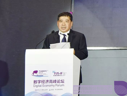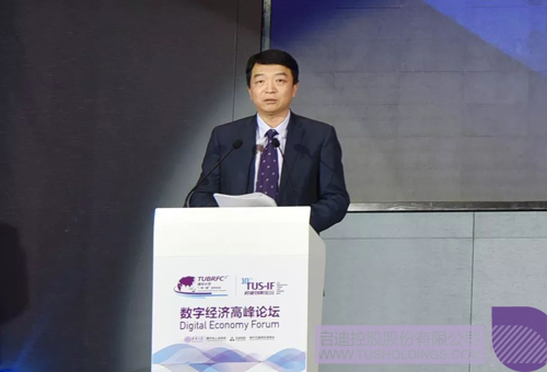 啟迪控股常務(wù)副總裁、中關(guān)村數(shù)字產(chǎn)城聯(lián)盟理事長趙東在數(shù)字經(jīng)濟(jì)高峰論壇上致辭