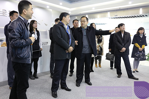 王鳳朝董事長(zhǎng)(前排左二)一行參觀啟迪控股數(shù)字展廳