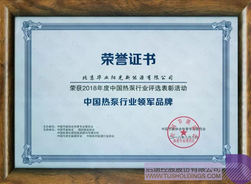 2018年8月,在由中國(guó)節(jié)能協(xié)會(huì)主辦、中國(guó)熱泵產(chǎn)業(yè)聯(lián)盟承辦的2018中國(guó)熱泵行業(yè)年會(huì)暨第七屆國(guó)際空氣源熱泵行業(yè)發(fā)展論壇上,華業(yè)陽(yáng)光以優(yōu)異的成績(jī)及表現(xiàn)榮獲空氣源熱泵行業(yè)最高榮譽(yù)—“中國(guó)熱泵行業(yè)領(lǐng)軍品牌”稱號(hào)。