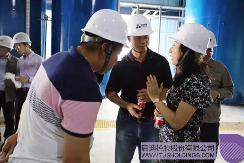 袁桅總裁(前排右一)介紹膜法鎂鋰分離項(xiàng)目