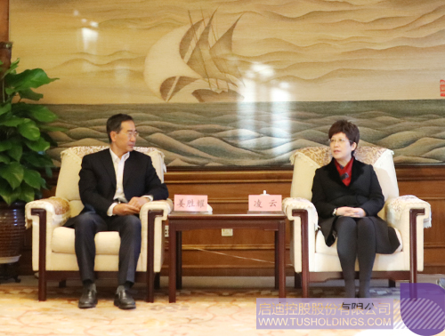 清華大學黨委常務副書記、副校長姜勝耀(左)和凌云市長親切交流