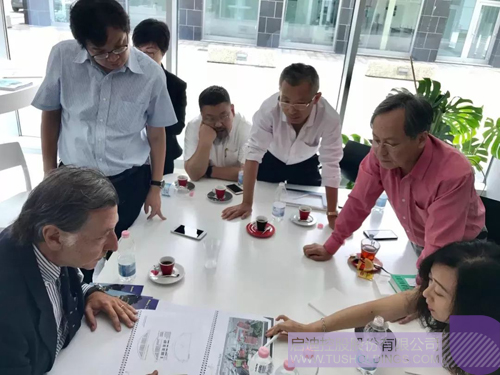 清華美院和啟迪聯(lián)合項目團(tuán)隊與MarcoTuisini(左一)溝通物業(yè)情況