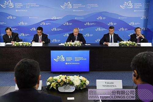9月11日,俄羅斯第四屆東方經(jīng)濟(jì)論壇在遠(yuǎn)東城市符拉迪沃斯托克舉辦。當(dāng)日下午,由論壇主辦方邀請的中外企業(yè)家代表參加了與普京總統(tǒng)的座談會。王濟(jì)武董事長應(yīng)邀出席,并與其他五位中外企業(yè)家在座談會上發(fā)言。